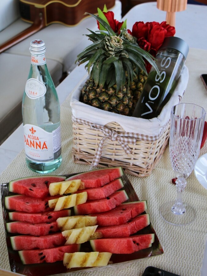 ด้านในเรือมี เครื่องดื่มฟรี! ไม่ได้ฟรีธรรมดา ฟรีแบบไม่อั้นอย่างกับบุฟเฟ่ต์ และมีผลไม้ตามฤดูกาลให้ตลอดการเดินทาง พร้อมกับอุปกรณ์ดำน้ำตื้น ที่จะพาไปดำน้ำตามจุดต่างๆ