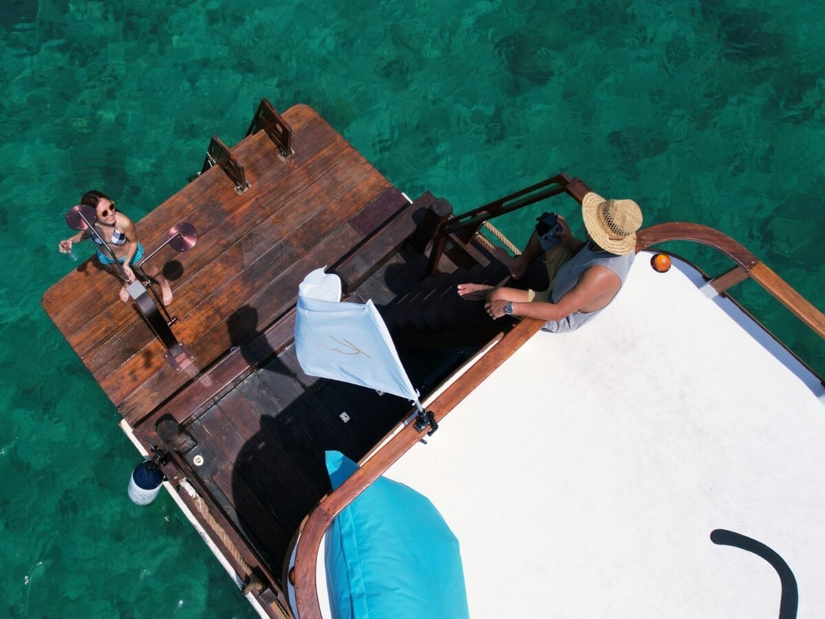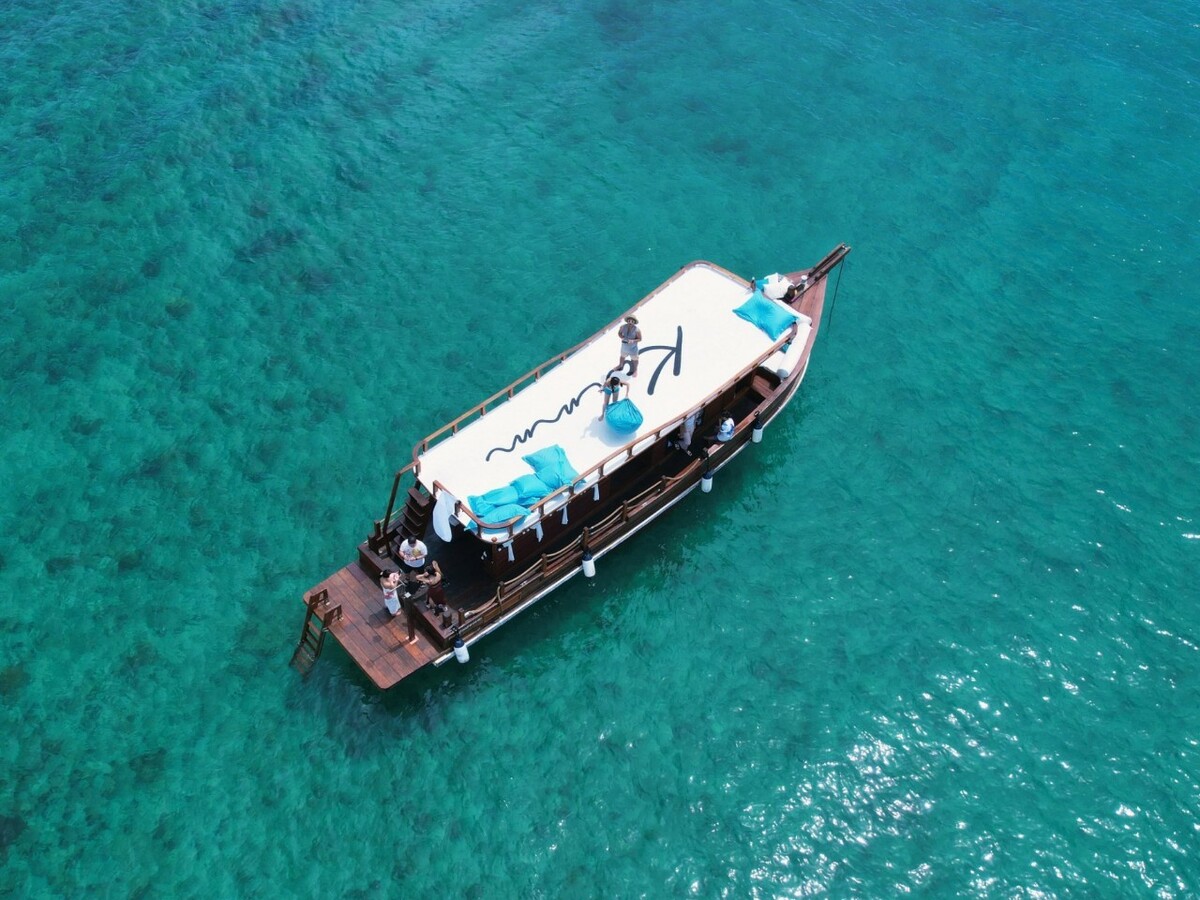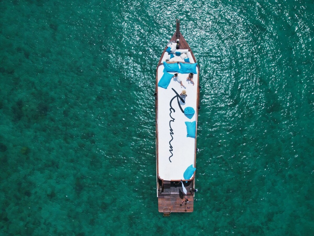 พูดถึงการตกแต่งบนเรือกันบ้าง เนื่องด้วยเรือ KARMM เป็นเรือไม้ ตัวเรือจึงเป็นสีน้ำตาลเป็นหลัก และตกแต่งด้วยโทนสีขาว เลยทำให้ดูเป็นสไตล์มินิมอลเบาๆ เรือมี 2 ชั้น ชั้นสองทำเพื่อสำหรับการโพสต์ท่าไว้อวด หรือ นอนอาบแดดโดยเฉพาะ